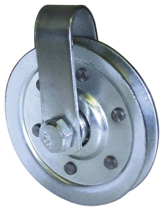 Ideal Security Poulie de porte de garage, à utiliser avec, modèle SK7153, SK7155, SK7157, SK7159 de ressorts de portes de garage, 4 po de diamètre, acier, galvanisée, 4,12 x 4,12 x 3/4 po, comprend, fourche, écrou, boulon, pour les portes sectionnelles basculantes