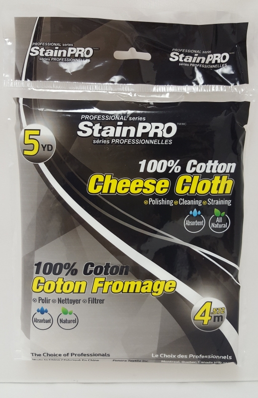 Vous voulez de bons résultats à l’ancienne? L’étamine 100 % coton est utilisée depuis des décennies par les professionnels et les amateurs de travail du bois. C’est l’outil idéal pour teindre, nettoyer, polir et filtrer la peinture. Cette étamine de qualité alimentaire est également idéale pour égoutter les fruits et les légumes pour faire des conserves et des gelées.