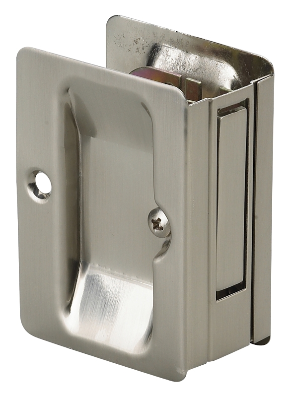 Onward Poignée de porte escamotable, fonctions : passage, porte de 1-1/4 à 1-1/2 po d’épaisseur, 58 mm de large, 82 mm de haut, acier, nickel brossé, montage encastré, comprend : vis