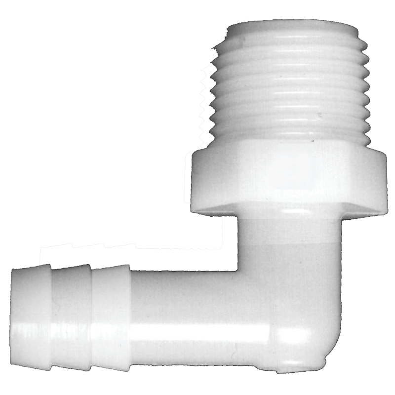 Fairview's nylon 90 deg male pipe elbow hose barbs are corrosion-proof and highly vibrant-resistant