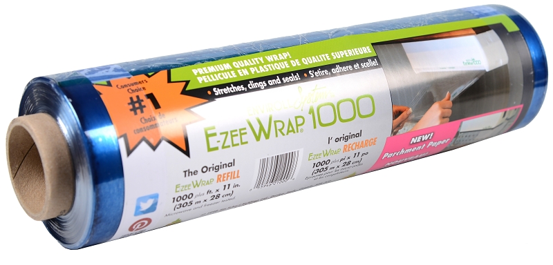 1 000 pi d’emballage plastique de première qualité. S’étire, se colle et scelle, testé pour le micro-ondes et le congélateur. Arrêtez de gaspiller un nombre incalculable de boîtes d’emballage en plastique achetées en magasin et arrêtez de perdre votre temps. Le produit E-ZEEWRAP 1 000MD se monte sous vos placards de cuisine pour vous offrir un approvisionnement instantané d’emballage de qualité commerciale. Vous pouvez comparer cela à l’utilisation d’un film plastique traditionnel en boîte. D’ici à trouver le bout du rouleau, commencer à le dérouler, lisser les enchevêtrements et le déchirer, vous avez déjà perdu du temps. Faites travailler la qualité professionnelle du produit E-ZEEWRAP 1000MD à votre place dans votre maison.